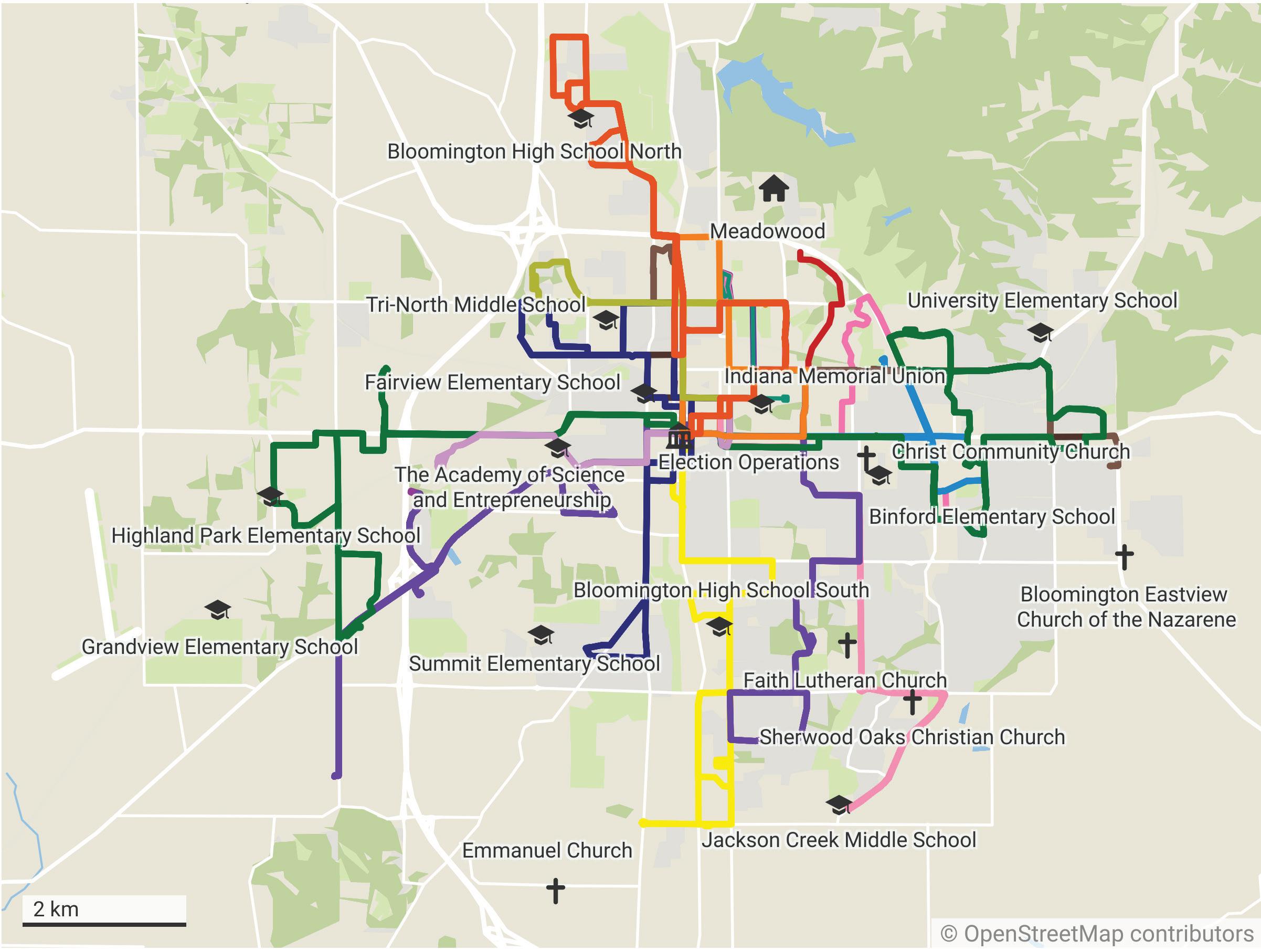 There are several options for transportation to the polls. For IU students, faculty, staff and visitors, riding a campus bus is a free and easy way to travel. IU students, faculty and staff may also ride any Bloomington Transit bus for free by showing their IU ID when boarding.