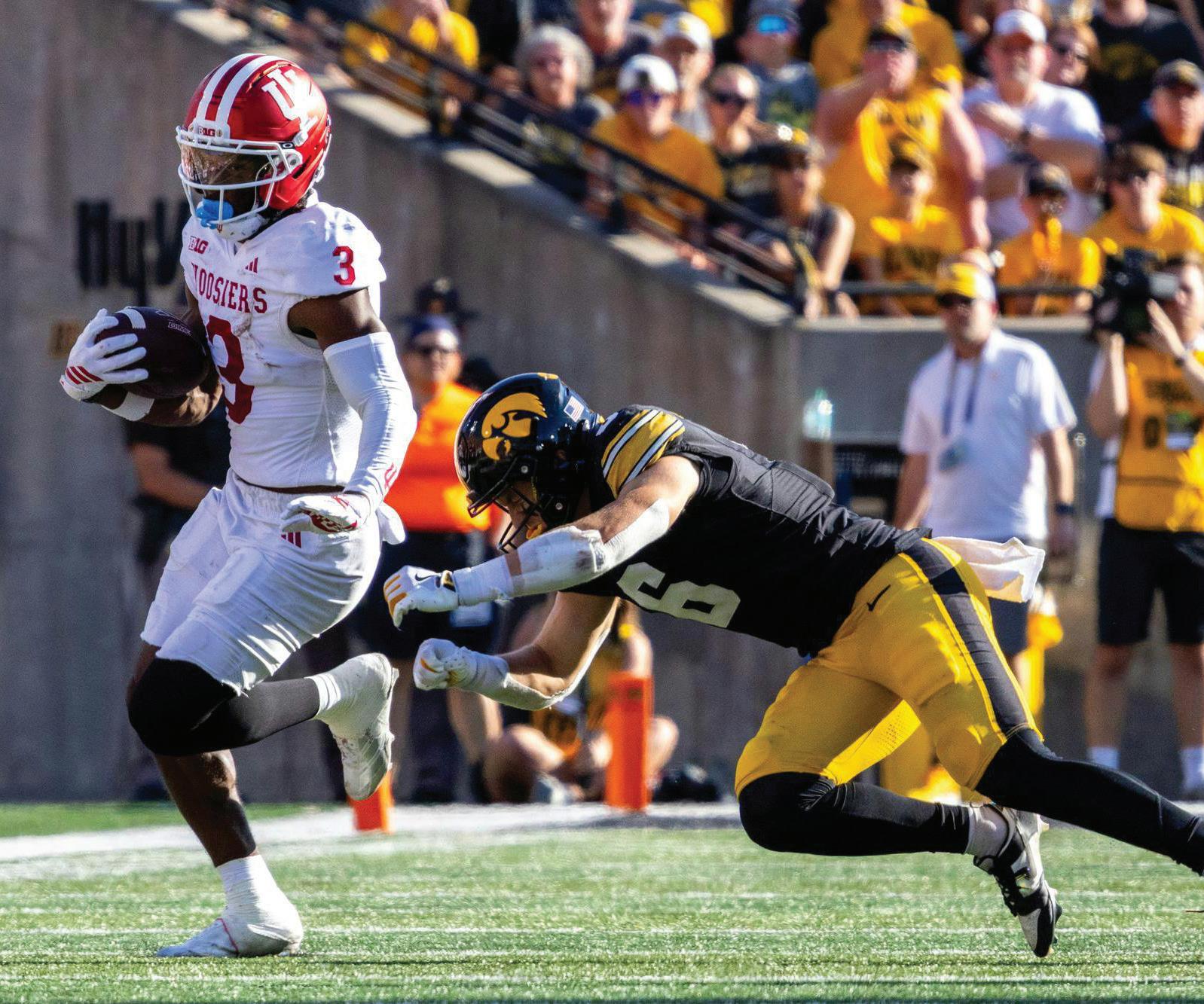 Iowa routinely looked his way, finding redshirt senior wide receiver Sam Phillips five times for 64 yards. As a whole, the Hoosiers’ secondary gave far too much cushion in man assignments and were undisciplined in zone coverages. It’s important to note that AllAmerican junior cornerback D’Angelo Ponds didn’t play against the Hawkeyes for an undisclosed reason. His absence was noticeable.