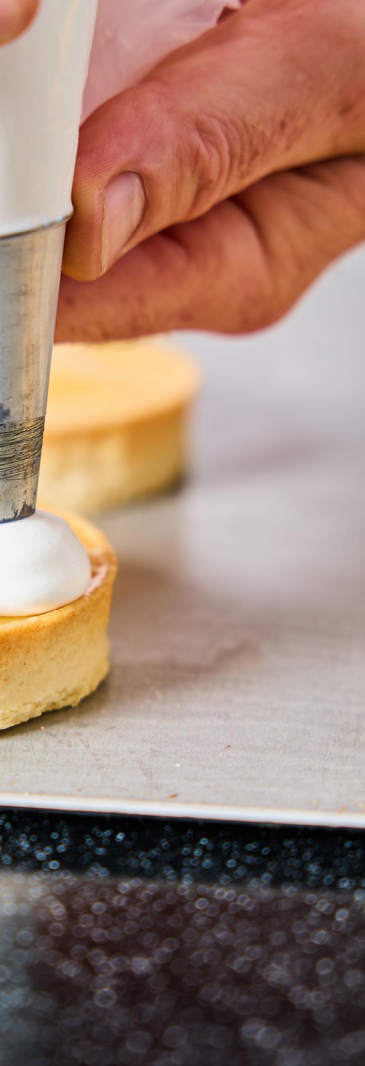 «Jo mer vi jobber med disse mørdeigsformene, jo mer imponert blir vi. De passer like godt til fingermat og catering som på hotellbuffeer, konferanser eller bakeridisken. Med sesongens fyllinger og pynt kan kundene skape sin egen signatur. Tre små tarteletter med ulike fyll på en desserttallerken blir en opplevelse i seg selv» forklarer Eva.