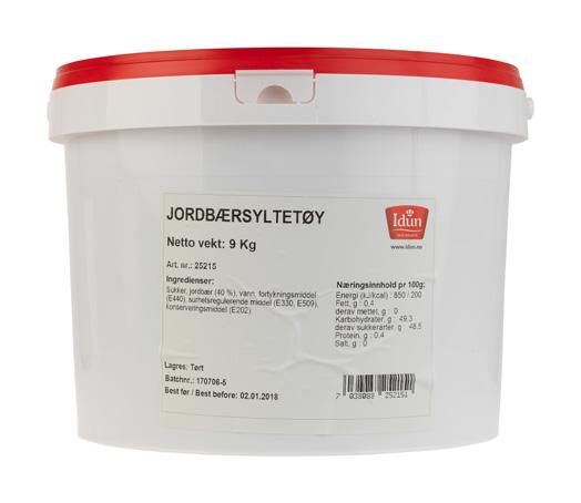 Smørevennlig jordbærsyltetøy til bruk i f.eks. kaker, rullader, og til vafler og sveler. Produktet inneholder 50 % bær.