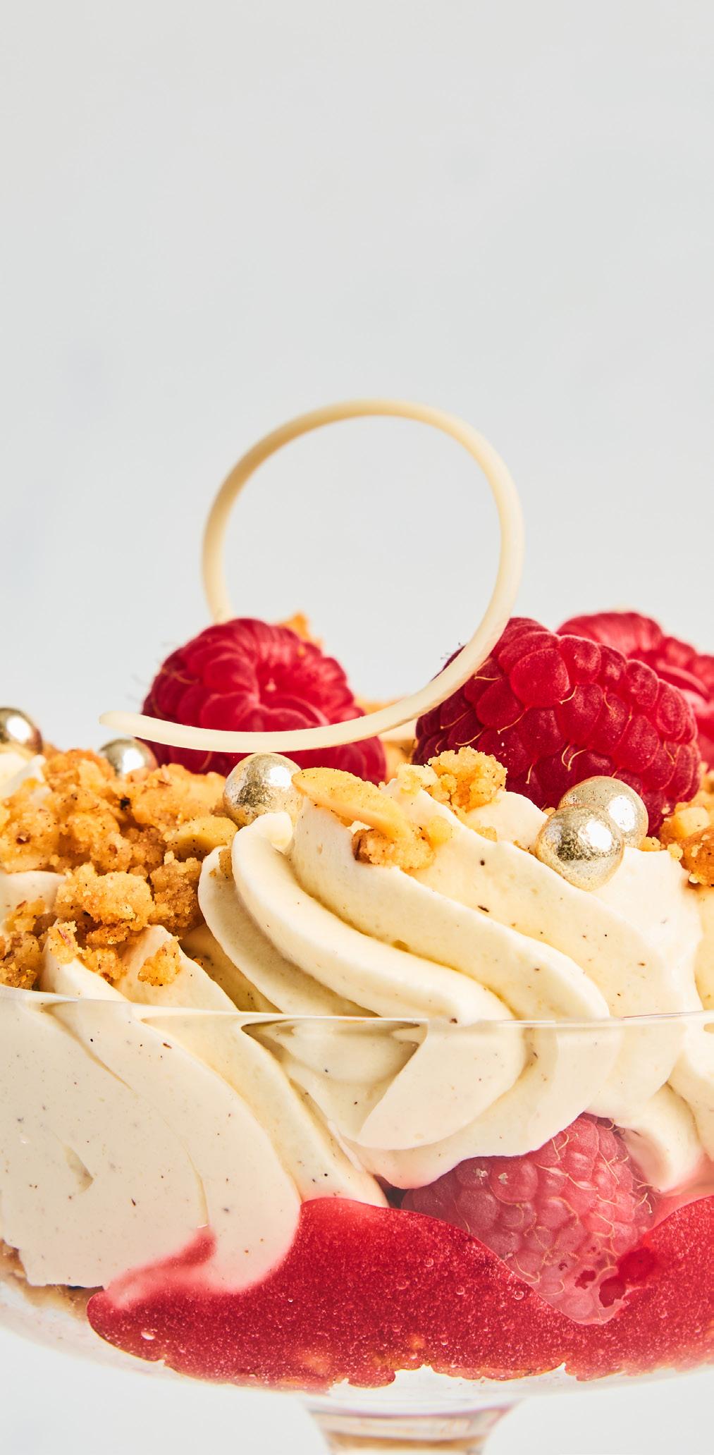 Frisk og syrlig smak av bringebær, med en myk og kremete konsistens.