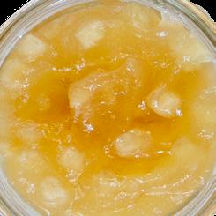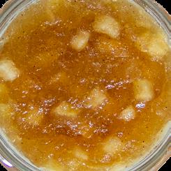 Eplemarmelade med en spennende kryddersmak av ingefær og kanel. Inneholder 30 % eple. Fast konsistens, med biter av eple.