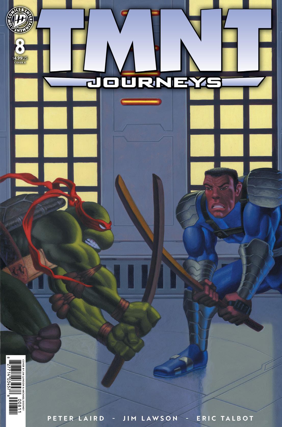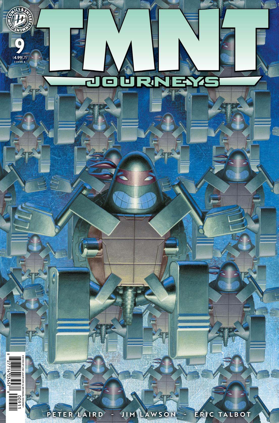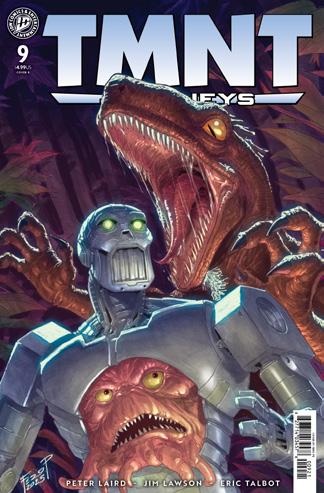 Fugitoid and the Turtles get a surprise visitor when Agent Lonae shows up on their doorstep. The E.P.F., Agent Blanque, Bishop, and Zog are closing in on our heroes. Will the boys hunker down to defend their home and their new robot friend or take the fight to the enemy? Find out in this issue featuring new original takes and designs on classic legacy Teenage Mutant Ninja Turtles characters.