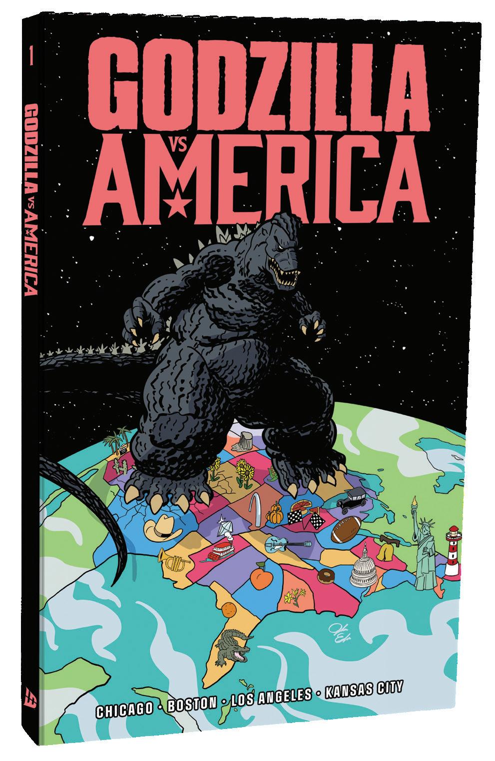 Godzilla’s destructive tour of America—all in one book! From Chicago to Boston to Los Angeles to Kansas City, the King of the Monsters is taking on the Land of the Free! Join a superstar team of comics creators for 16 incredible stories all set in these cities across the map! E pluribus—uh-oh.