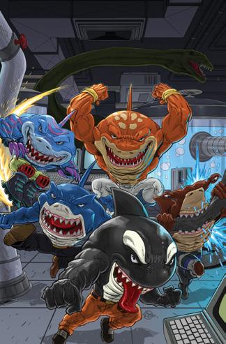 And in the backup story: With the lair all to himself, Bends invites a girl over for a dinner date. But when the Sharks are away, the Seaviates come out to play! Bends will be defenseless to stop them…or so he wants you to believe.