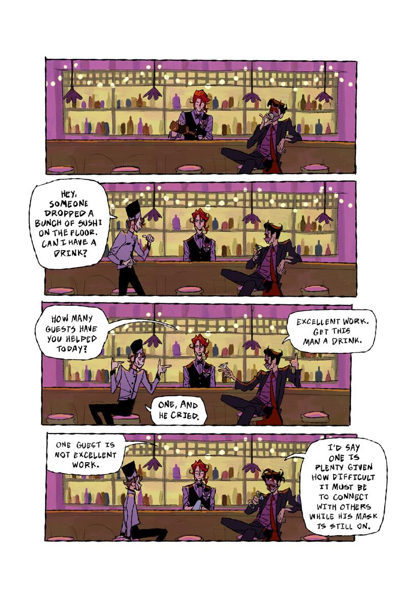 After awakening in the middle of nowhere, a young man is forcefully inducted into the Hotel Limbo as its new bellboy (“BB” for short). Faced with magical masks, giant cats, a mysterious staff, and a hotel that just won’t sit still, BB will soon learn that helping with “baggage” means something very different when all the guests are dead.