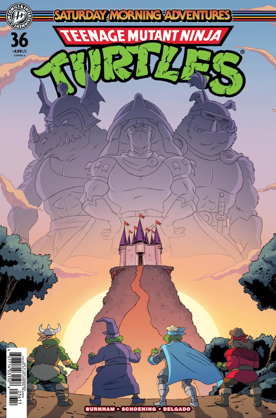 Krang, the Great Warlord of Dimension X…has a nasty cold. And he’s miserable. Shredder and Rocksteady are off on a mission of their own, leaving only Bebop to keep the ill alien company, and with nothing good on TV, Krang demands entertainment. So Bebop tells him a bedtime story—a fairy tale filled with heroes and villains, queens and creatures. Have a fun time storming the castle in the latest issue of TMNT: Saturday Morning Adventures