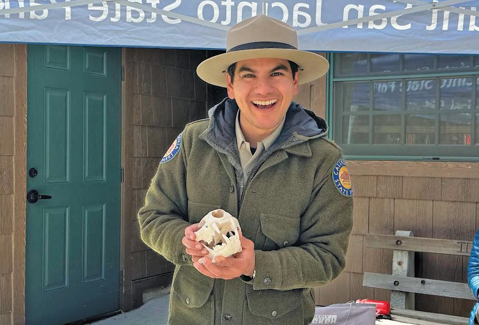 State Park‘s Nick Garduno showing the difference between a bobcat and mountain lion skull at the Idyllwild Trail Festival