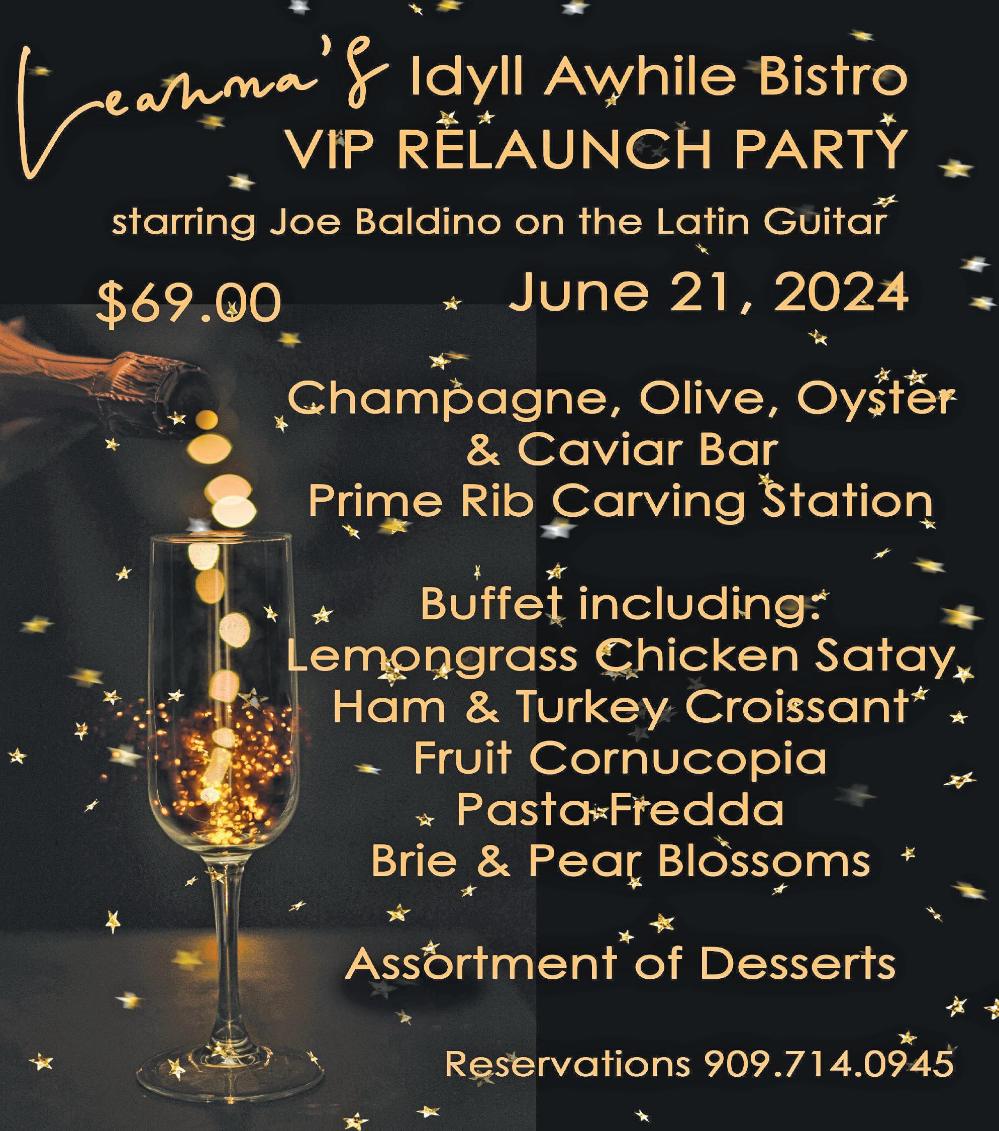 A&E Calendar B5 Churches B5 Classifieds B4 Community Calendar A7 Games B8 Opinion A4 Past Tense B5 Public Notices A8 Service Directory B3 Weather A4 Idyllwild Town Cr ier Idyllwild’s Newspaper, Serving the Hill for More Tan 77 Years Almost All the News — Part of the Time ... Online All the Time @ IdyllwildTownCrier com $1 Member Supported VOL. 79 NO. 24 IDYLLWILD, CA THURS., JUNE 13, 2024 (951) 236-7636 robin@robinoates.com Robin Oates Broker/Owner CalBRE# 00591170 www.idyhomes.com MLS BEAUTIFULLY UPDATED AND REIMAGINED, FARMHOUSE FEATURES, NEW KITCHEN 2 BEDROOMS, 1.75 REMODELED BATHROOMS, DRAMATIC OPEN TRUSS DESIGN WOOD FLOORS, ROCK FIREPLACE, CUSTOM FINISH THROUGHOUT JUST SOLD $535,000 DECORATOR DESIGNED MODERN RUSTIC WALK TO TOWN another robin oates real estate listing sold! MLS# 2010578 MLS# 2010245 MLS# 2009534 www.lovethehill.com shane@idyrealty.com ashley@ridgewayvision.com DRE#01367581 Shane & Ashley Stewart 951-500-6140 & 951-818-1170 DRE#01239103 & DRE#01466789 (760) 235-0477 mel.e.norman@gmail.com MLS# 2010616 Mel E. Norman DRE# 02201936 53635 COUNTRY CLUB DR 3 BEDS 1.75 BATHS Open House Saturday June 22, 2024 11am-3pm $453,000 55035 JOHN MUIR 3 BED 1 BATH 1062 SQFT 0.14 ACRES $450,000 Heatwave over, but keep fans nearby …PAGE A2 Legislators moving forward with FY 24-25 budget …PAGE A6 O N THE T OWN Byron Brings Beauty to Idyllwild …PAGE B1 Idyllwild Town Crier NEWS Summer Concert Series Fundraiser - $49k Goal $35,000 $30,000 $25,000 $20,000 $15,000 $10,000 $5,000 $24,300 New Honest Pricing Law SB 478 to Take Efect July 1 …PAGE A4