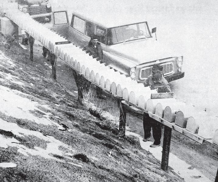 Much has changed on the Hill since this photo was taken at the Pine Cove “post office” of locals getting their mail in the 1960s. FILE PHOTO