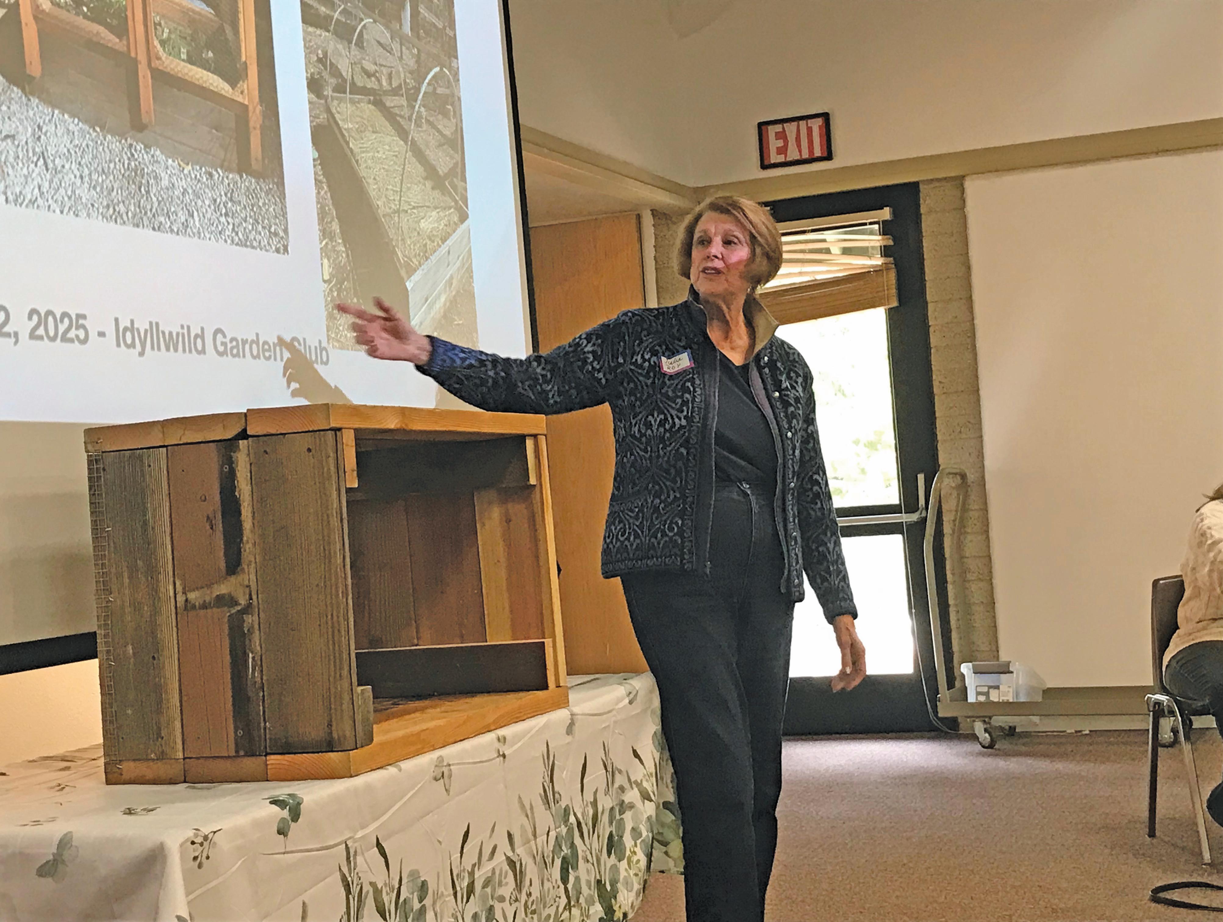 Julie Roy is one of Idyllwild’s “super-volunteers,” always finding new ways to contribute to our community through its many nonprofit organizations. At the April meeting of the Idyllwild Garden Club, where she serves as membership coordinator and is the immediate past president, she was gave a talk about gardening in raised beds. At last month’s meeting of the Art Alliance of Idyllwild she was named one of two “Volunteers of the Year.”