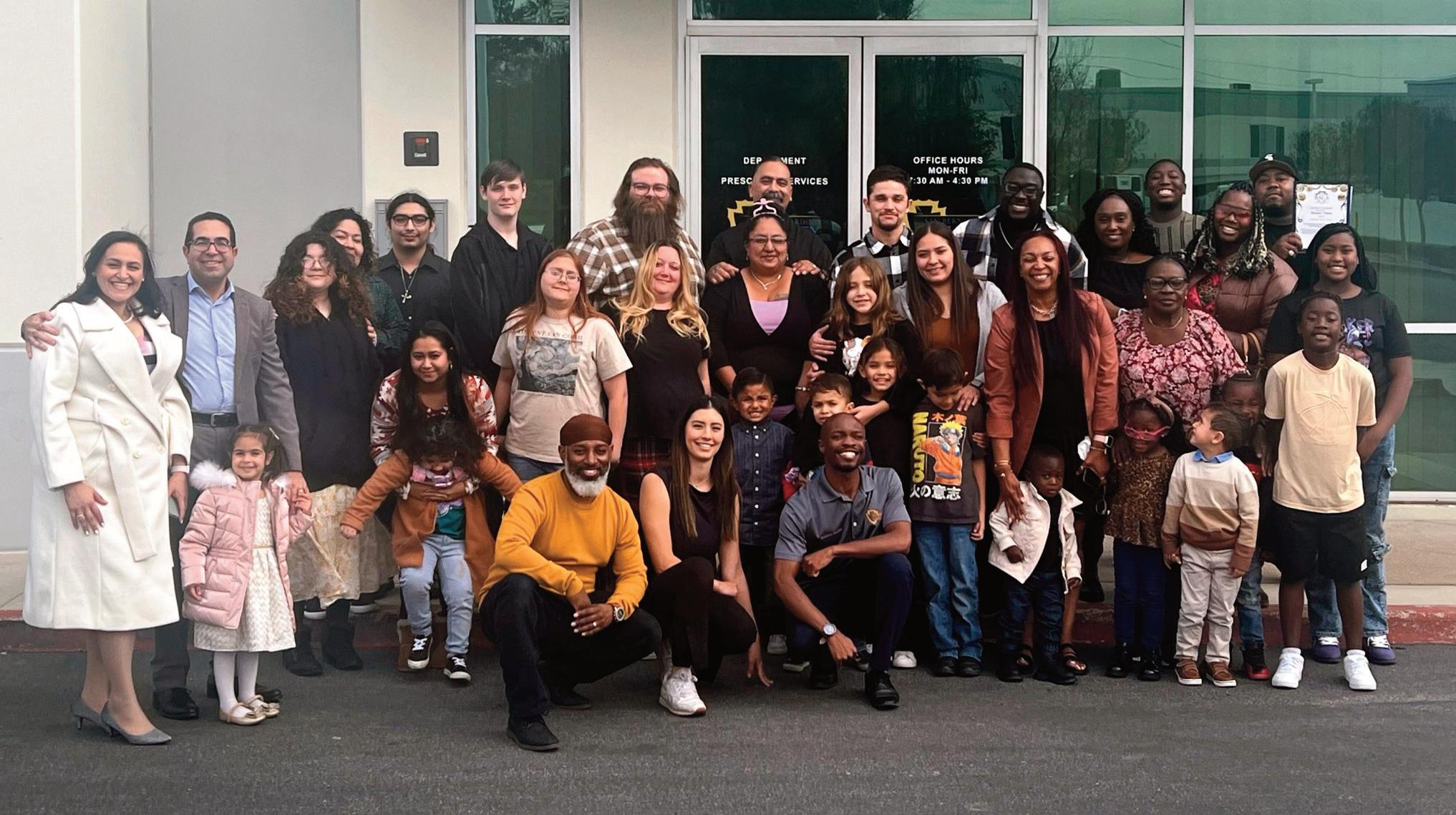 Front: Fatherhood FIRE program staff Gary Sookram, Stephanie Zavala and David Orepo; Back: John Kostandy, Madouna Toson, Chloe and Lucas Kostandy, Isaiah and Naomi Rosales, Jessy Karmokar, Genesis Toscano, Penelope Rosales, Kevin Corbin, Shainne and Emery Russell, Chelsea Corbin, Martin and Michelle Ramos, Peter Gonzales, Daniel