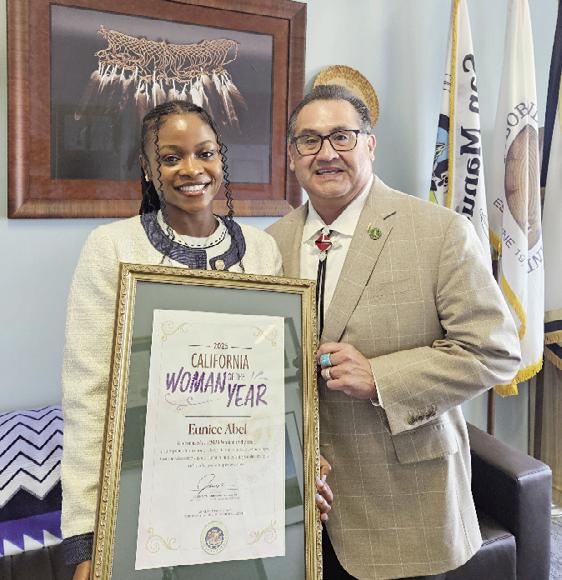 Assemblymember James C. Ramos (D-San Bernardino) honors Eunice Abel as the 2025 Woman of the Year for Assembly District 45, recognizing her tireless advocacy for youth and efforts to combat homelessness in the Inland Empire