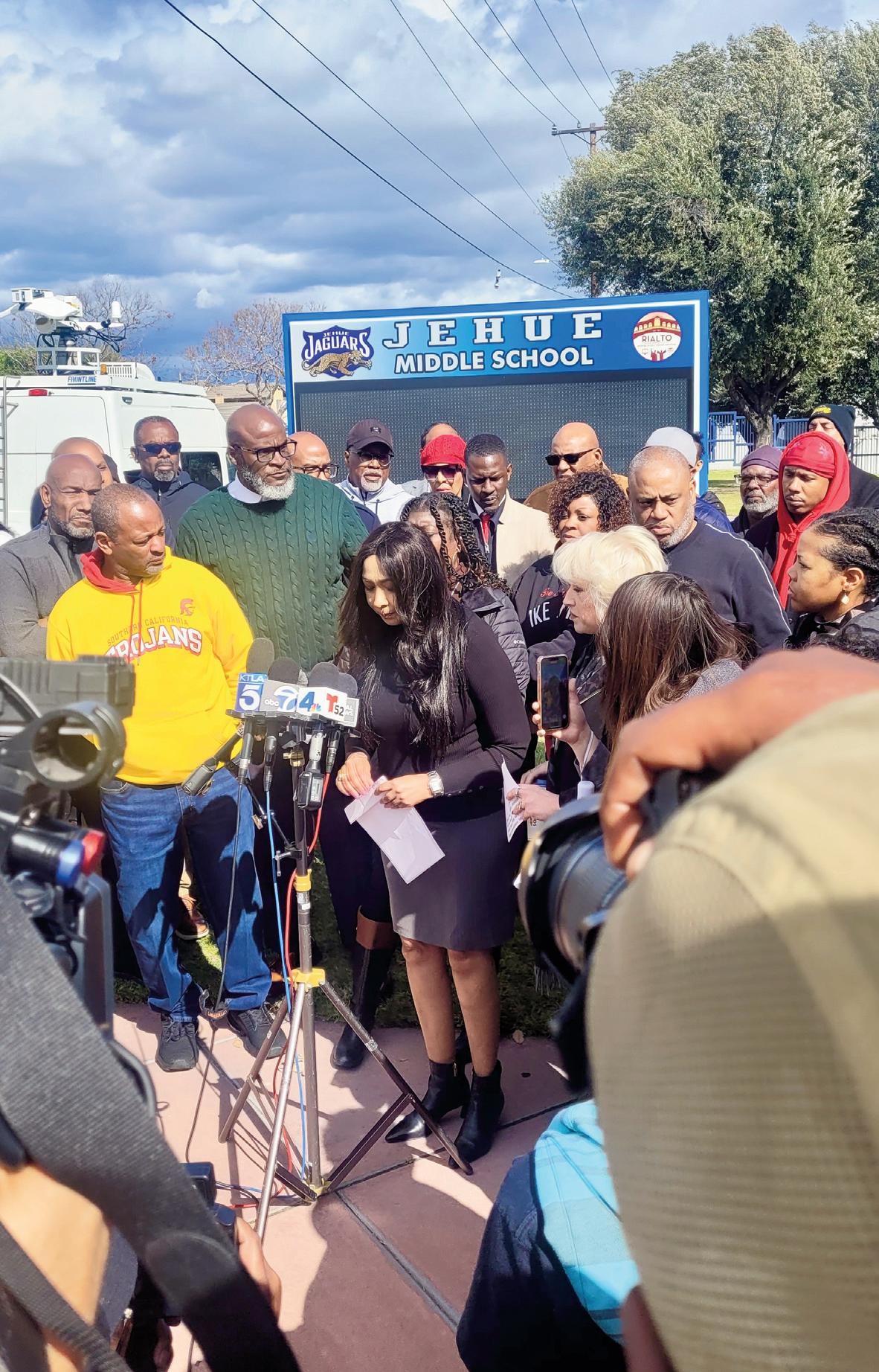 “We demand justice for the young African American female student who attends Jehue middle school who was viciously assaulted and knocked unconscious by a fellow student as racial slurs were being hurled at her,” Ali said. “So, we're outraged to find out that she was indeed sighted, and for us, it's criminalizing the victim, and we plan on protesting the Colton law enforcement agency responsible and demand that they retract the citation.”