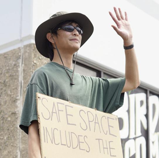 Former Birdcage Comics Cafe employee Philippe Manila protesting outside the cafe on July 18th, 2025.