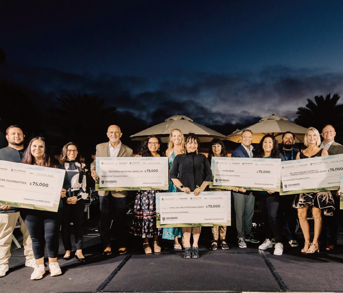 Representatives from the six selected nonprofits and Yuhaaviatam of San Manuel Nation tribal leadership celebrate $450,000 in charitable giving at the 2025 San Manuel Golf Tournament.