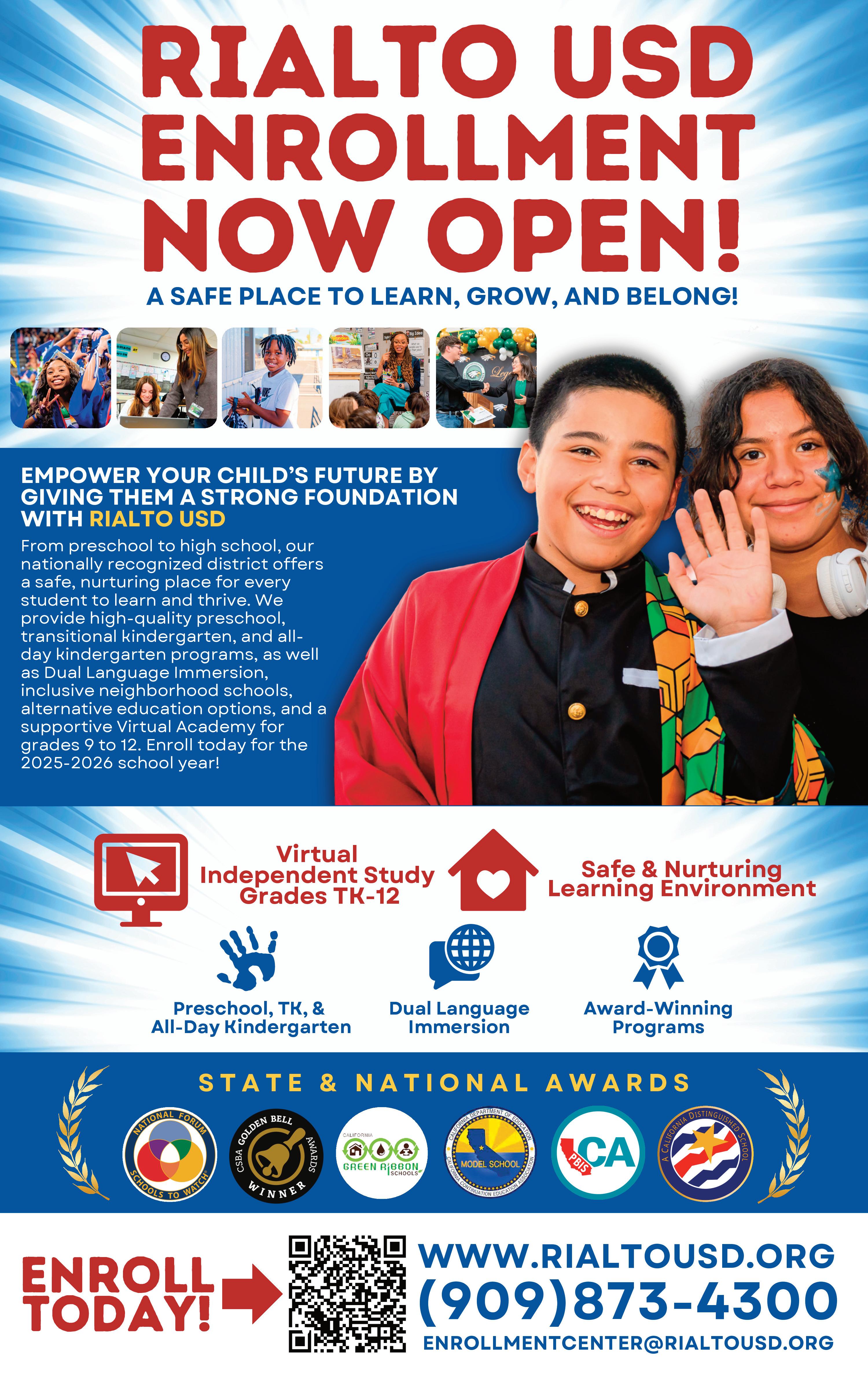KVCR, a PBS affiliate based on the San Bernardino Valley College campus, received two Emmy® Awards in June 2025 for The Warehouse Empire and Inland Edition. The station is also home to Learn With Me, a bilingual children’s education series created in partnership with local educators, Footsteps 2 Brilliance, and the San Bernardino County Superintendent of Schools.