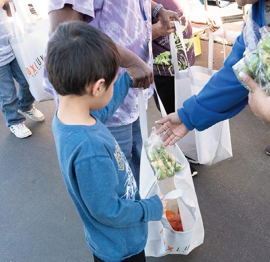 A young boy receives fresh vegetables at a Feeding America Riverside | San Bernardino food distribution site.