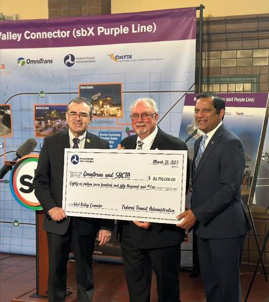 Representatives from the Federal Transit Administration (FTA) joined the San Bernardino County Transportation Authority (SBCTA), Omnitrans and local and regional leaders during a presentation ceremony at the Santa Fe Depot The $86 75 million in funding was awarded through FTA’s Capital Investment Grants (CIG) Small Starts program and will cover roughly one-third of the Connector ’s estimated $262 67 million Phase One capital cost