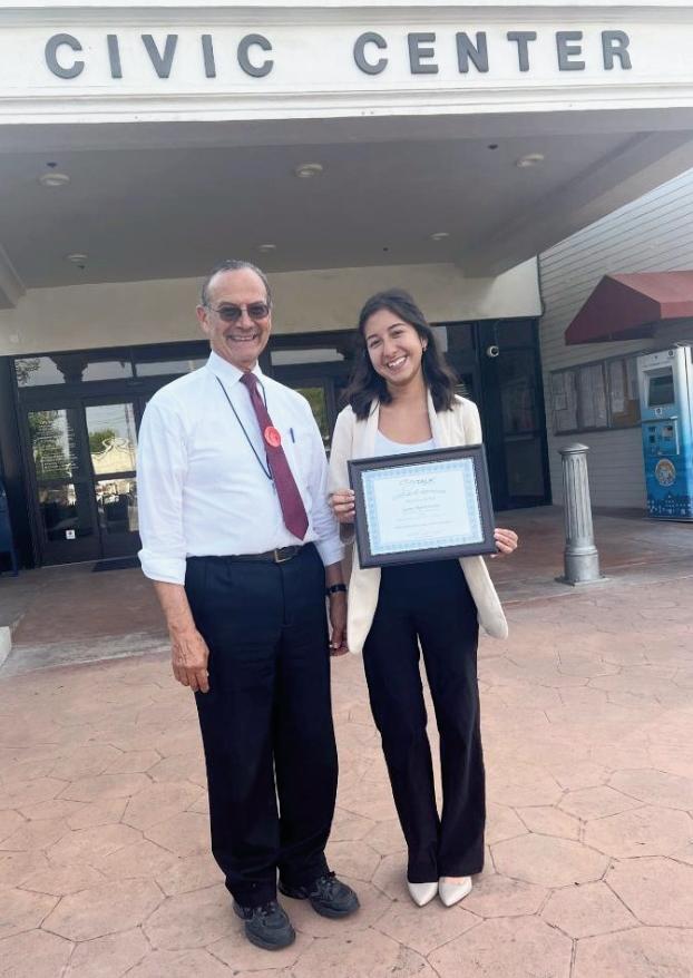 (Left to right) Dr. G, Council Member, and Genesis Rodela Uriarte, Youth Commissioner. Youth Commissioner , cont. next pg.