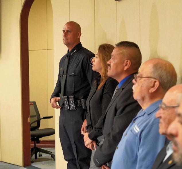 PHOTO MANNY SANDOVAL Chief Vega standing alongside City of Colton and Rialto councilmembers, including Colton Mayor Frank Navarro and Councilmember John Echevarria and Rialto City Councilman Joe Baca, Sr.