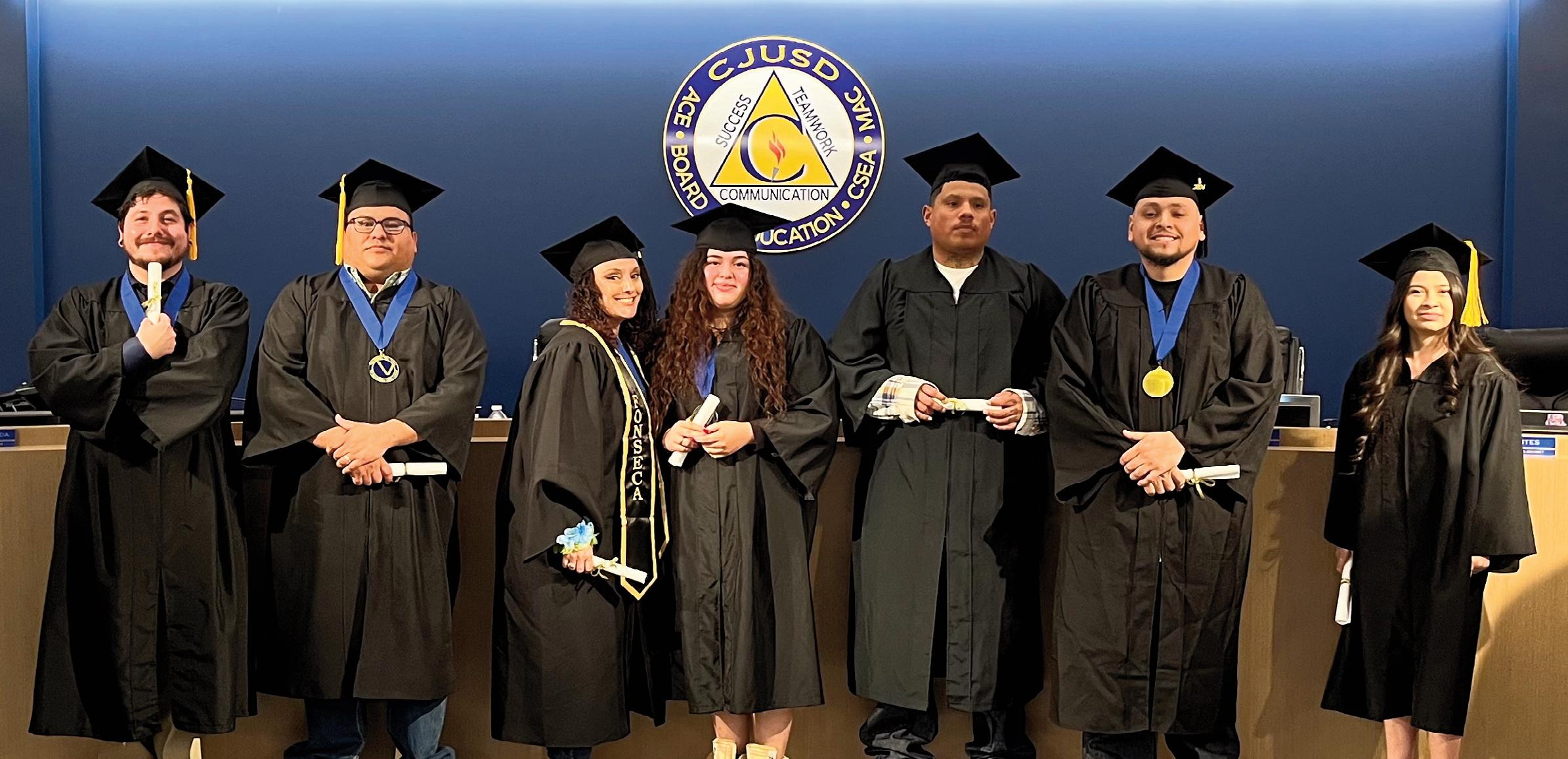 Principal Angela Hatter and the CJUSD Board of Education honor Adult Education graduates.
