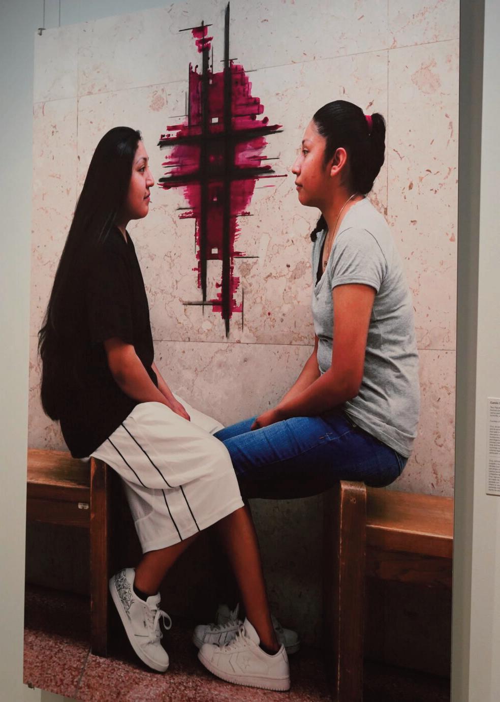 “Two Paiute Sisters, One Is Dead” (2025) by Camilo Cruz uses portraiture and cochineal dye to explore intimacy, loss and the lasting psychological and colonial impact of the criminal justice system on Indigenous and Latinx communities.