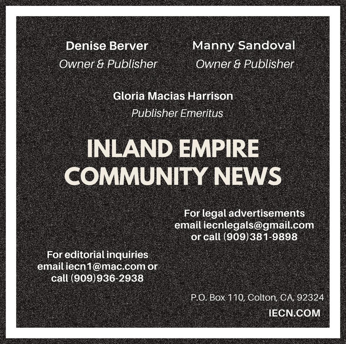 O f f i c e ( 9 0 9 ) 3 8 1 - 9 8 9 8 • C O L T O N C O U R I E R L E G A L A D V E R T I S I N G • F a x ( 9 0 9 ) 3 8 4 - 0 4 0 6 CC IECN May 30, 2024 Page A7 Inland Empire Community Newspapers We are now online! Check us out for all your community news. Visit us on the web at: www.iecn.com PUBLISH YOUR FBN ONLY $45! e-Mail your form to: iecnlegals @gmail.com Mail to: P.O. Box 110 Colton, CA 92324 Or call (909) 381-9898 for more info