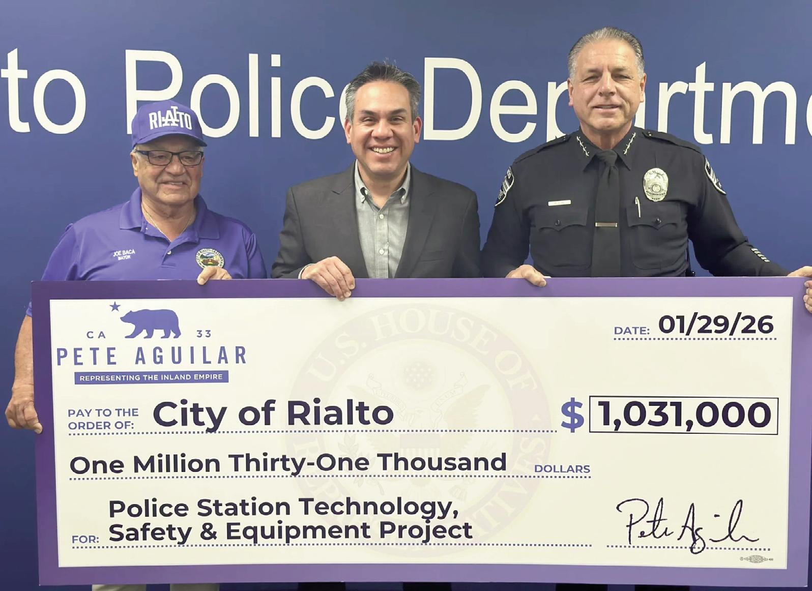 Rep. Pete Aguilar (CA-33) announced that he secured $1,031,000 in community project funding for the City of Rialto’s Police Station Technology, Safety and Equipment Project on Jan. 29th.