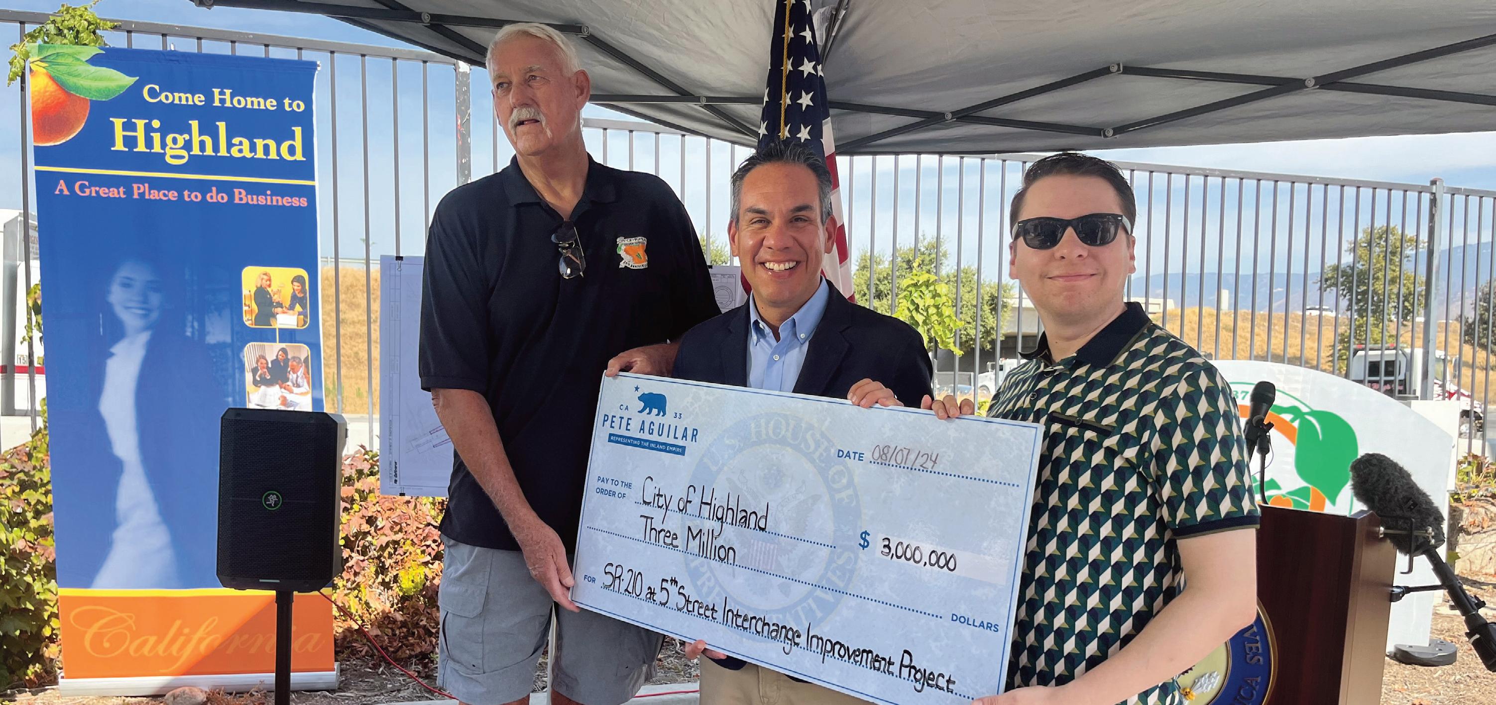 Rep. Pete Aguilar announced $3 million that he secured in federal funding to make improvements to the State Route 210 and 5th Street interchange in Highland that will reduce congestion and improve commute times.