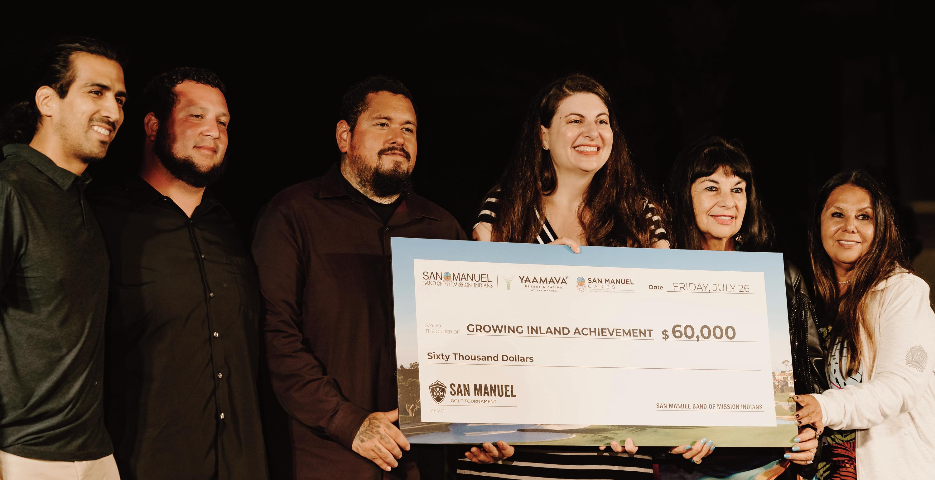 Growing Inland Achievement (GIA) has been awarded a $60,000 grant from the San Manuel Band of Mission Indians, generated through the Tribe's annual Charity Golf Tournament. This grant will support GIA’s mission to increase equitable educational attainment and economic success in the Inland Empire.