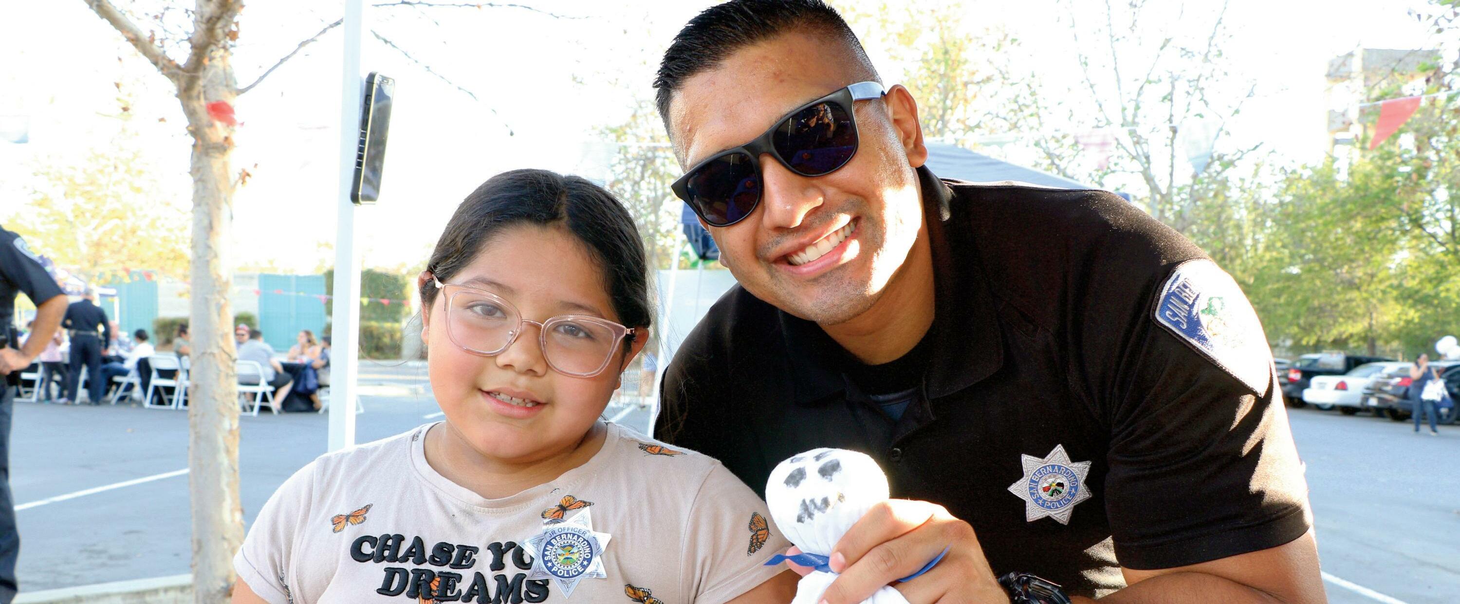 Several agencies attended providing in formation and giveaways including the City of San Bernardino Water Depart ment, CERT, SB County Work Force De velopment, Bureau of Victim Services, San Bernardino County Fire Department, and SBPD Historical Society Volunteers from the Citizens Patrol Unit and Chap lains Unit, and many others joined in to help during the festival It’s not every day that a child gets to do a craft, carve a pumpkin, or play games, or just a simple