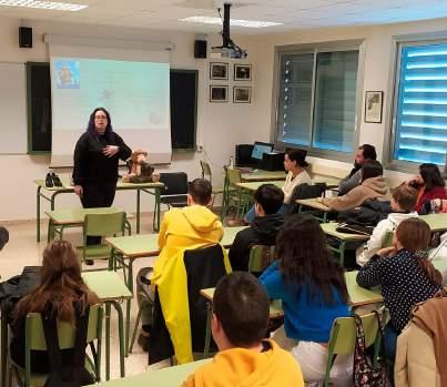 En una de ellas se dirigió al alumnado de primero y segundo de bachillerato con el tema de los avances en la investigación del cáncer, exponiendo las bases de esta,