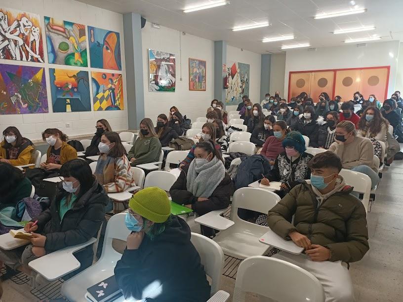 Nadamáispasadaaportadeentradado nosoinstituto,Lediciaxaeraunhamáis entreoalumnado,queestivemos encantadosdeescoitala.Colleuomicroe sentounabeiradoescenario,feitoquea fixoconectarconnósdexeito sorprendenteetransformouesacharla nunhaconversadomáisenvolventee dinámicaademaisdedivertida.