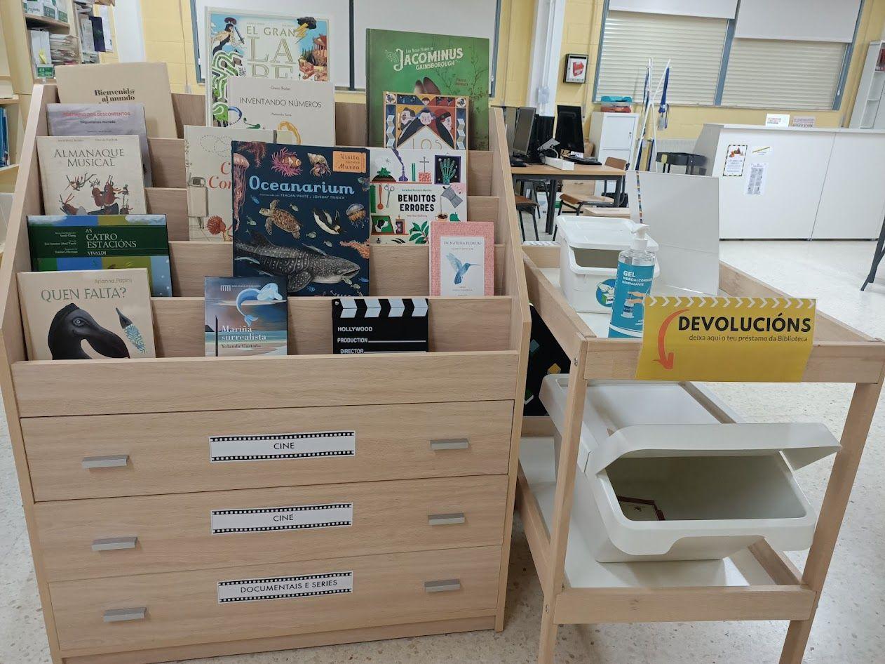 Avoltacomezounomesdexullode 2021,candocolocamosonovomobiliario adquiridocosfondosPLAMBE(Plande MelloradeBibliotecasEscolaresdaXunta deGalicia).Nestesmomentosenque todosestabamosxacansosenecesitados devacacións,otraballoeaxudade Fernando,LauraeManuelfoi imprescindible.