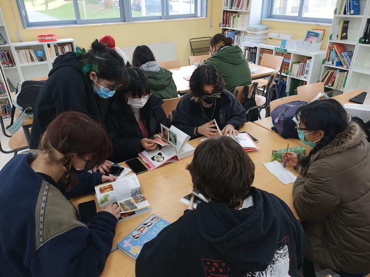 AlumnadoeprofesoradamateriadeTécnicasdeExpresión GráficoPlásticade2ºdeBacharelatoedoEquipode voluntariado-axudantesdabibliotecadocurso2021-22