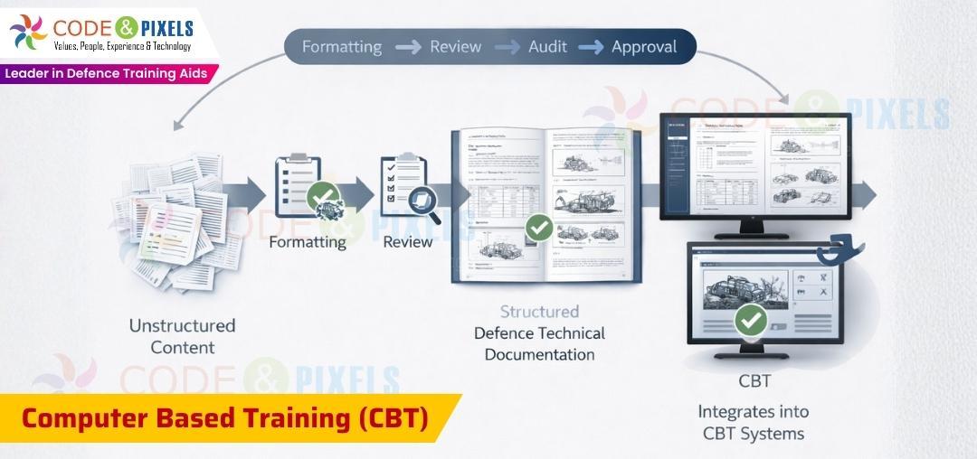 Our CBT and E-Learning Development Centerat Code and Pixels, is capable of end-to-end development of Computer Based Training (CBT) and Interactive ELearning solutions, Technical Literature for Defence, OEMs, Banking and Corporate clients.