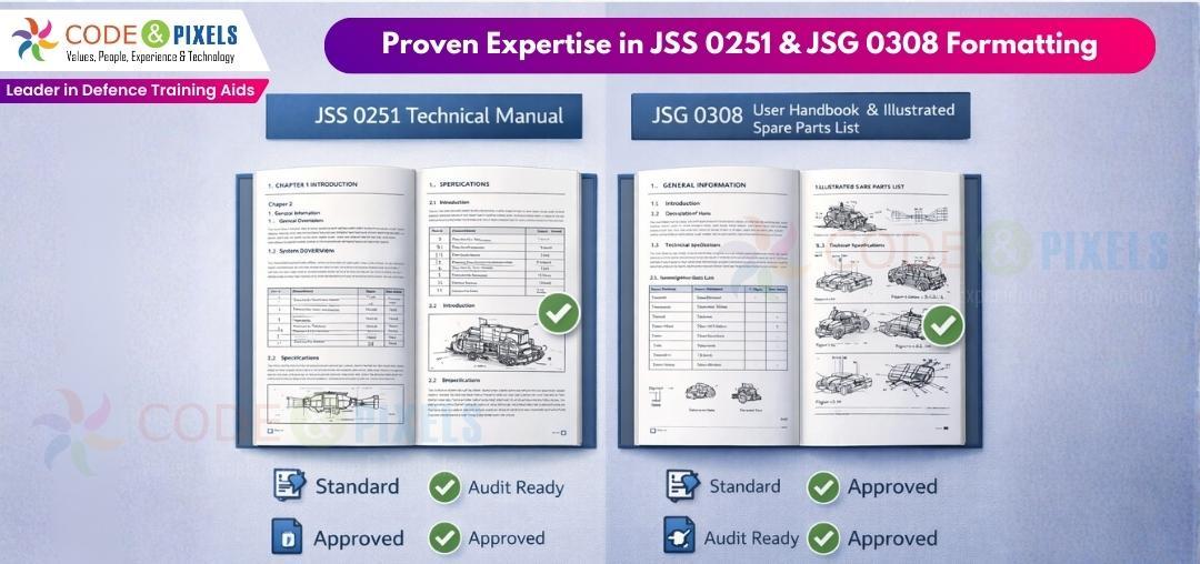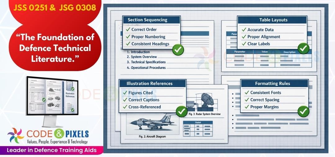The quality of TechnicalDocumentationisEvaluatedinthedefenseindustrywith thesameseriousnessasthesystemitself. Technical manuals, user manuals, and illustrated parts lists must adhere to specified formats,such asJSS 0251 and JSG 0308,forOEMscollaboratingwiththeIndianMinistryofDefense.