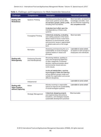 Table 1. Challenges and Competencies for Multi-Stakeholder Interaction Challenges Dealing with Wickedness