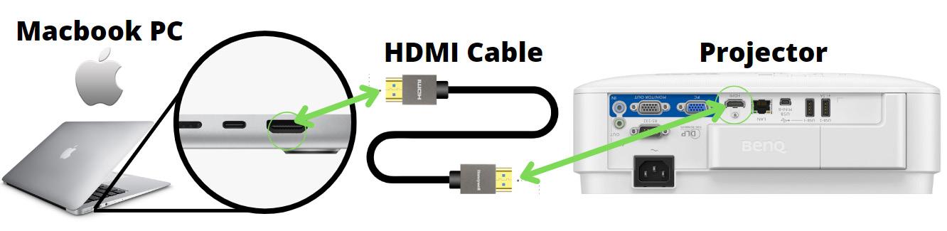 You probably noticed that the setup is exactly the same for both Windows and Mac when the laptop and projector have an HDMI port. All that is needed is just one cable.