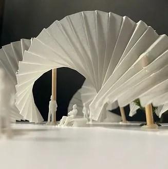 ProposedapavilioninspiredbyaSinistrofulgurperversum, thelightningwhelk,isanediblespeciesofverylarge predatoryseasnailorwhelk,amarinegastropodmolluskin thefamilyBusyconidae,thebusyconwhelks.Thisspecieshas aleft-handedorsinistralshell.Thefoldsoftheshellsinspired thedesign.Itbecamemymainunitalongwithastructure.