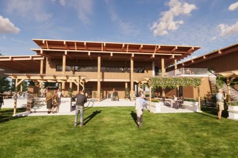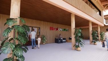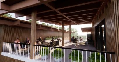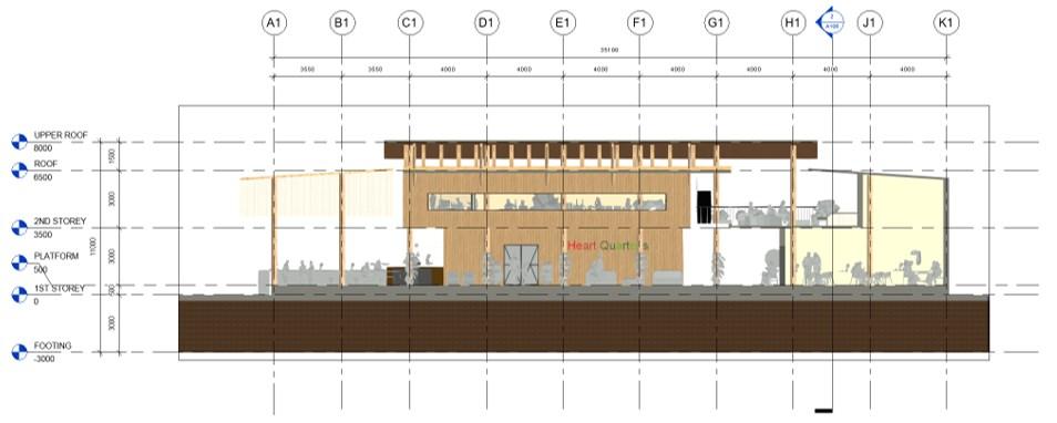 Thefacadeoftheofficeismadeoftimbermaterial,asitisa versatilematerialthathasseveralbenefits,including excellentinsulation,carbonstorage,andenergyefficiency.