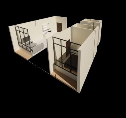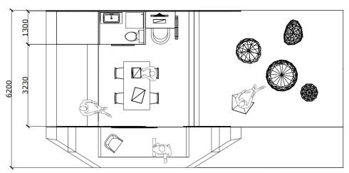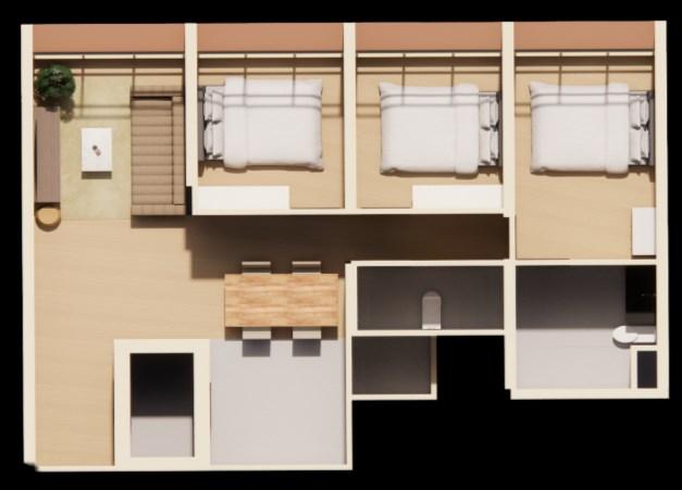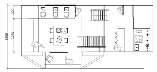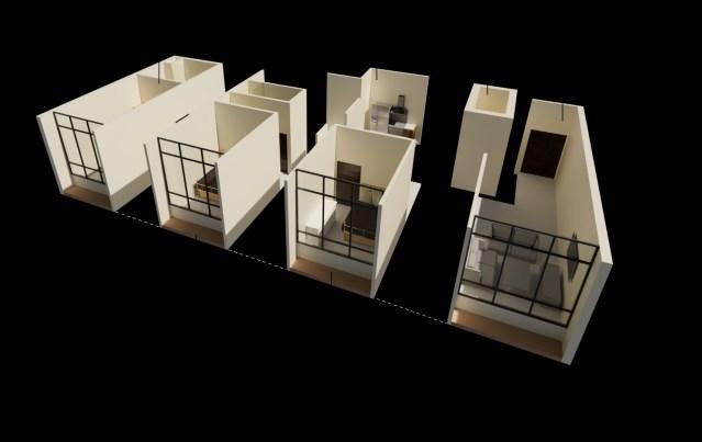 Ithasarooftopterraceforclientstoworkoruseasalounge, aswellasaninformantmeetingarea.Moreover,itincludesa livingroom,adiningroom,akitchen,atoilet,andasleeping area.