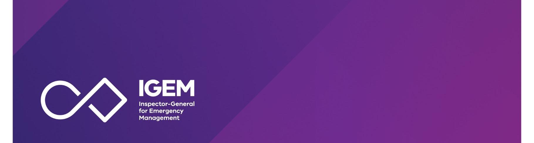 The Inspector-General for Emergency Management (IGEM) provides assurance to the Victorian Government and the community on the state's emergency management arrangements and fosters their continuous improvement.