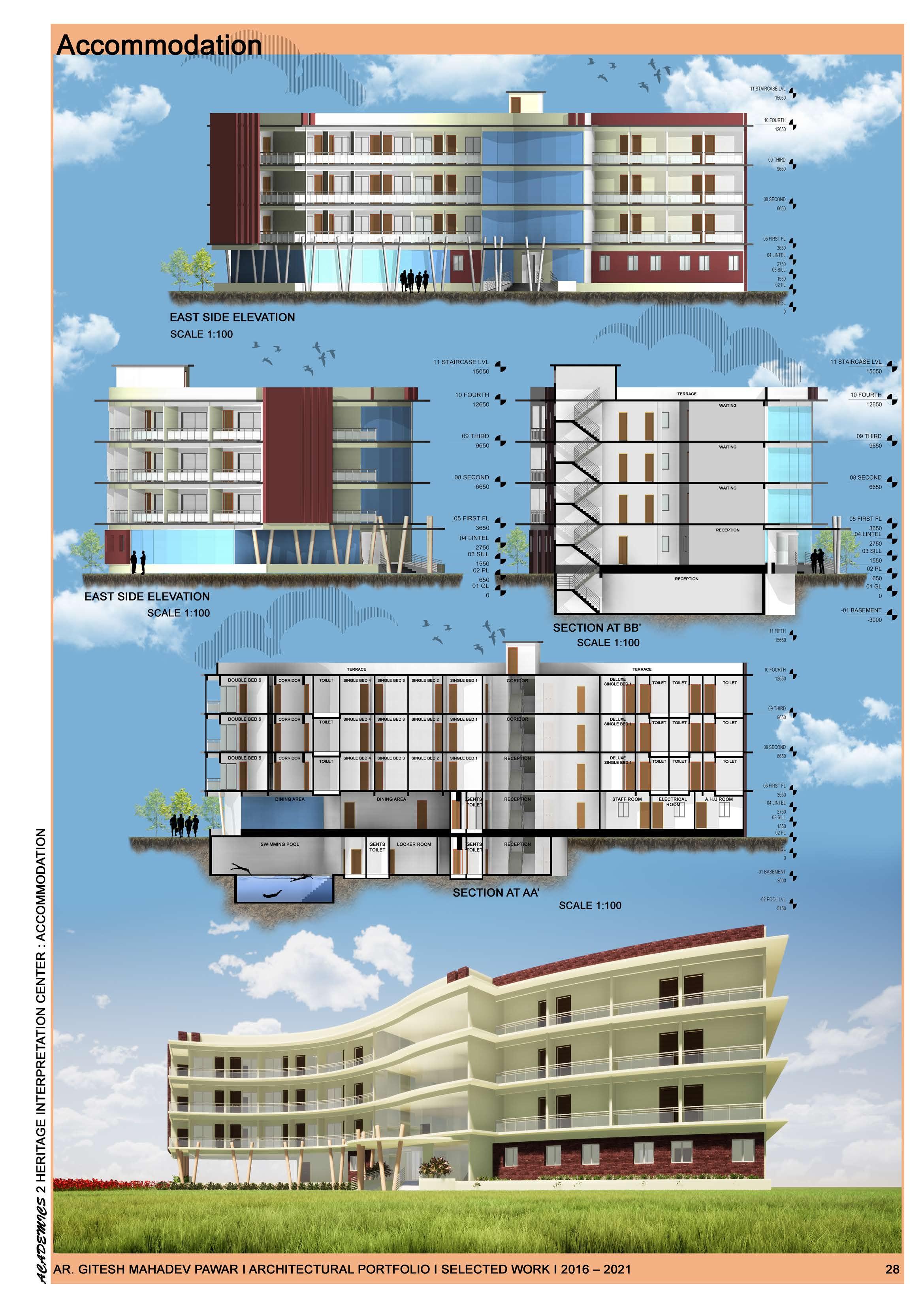 A Work and Academic Portfolio in architecture serves as a visual representation of an architect's career and education. This portfolio typically contains things like 3D visualizations, Construction plans, and project documentation that I've created using software such as AutoCAD, Autodesk Revit, Sketchup, Twinmotion, and similar tools.
