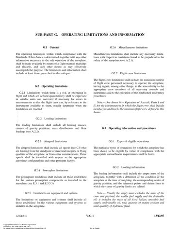 G.2 Operating limitations G.2.1 Limitations which there is a risk of exceeding in flight and which are defined quantitatively shall be expressed in suitable units and corrected if necessary for errors in measurements so that the flight crew can, by reference to the instruments available to them, readily determine when the limitations are reached. --`,,```,,,,````-`-`,,`,,`,`,,`---