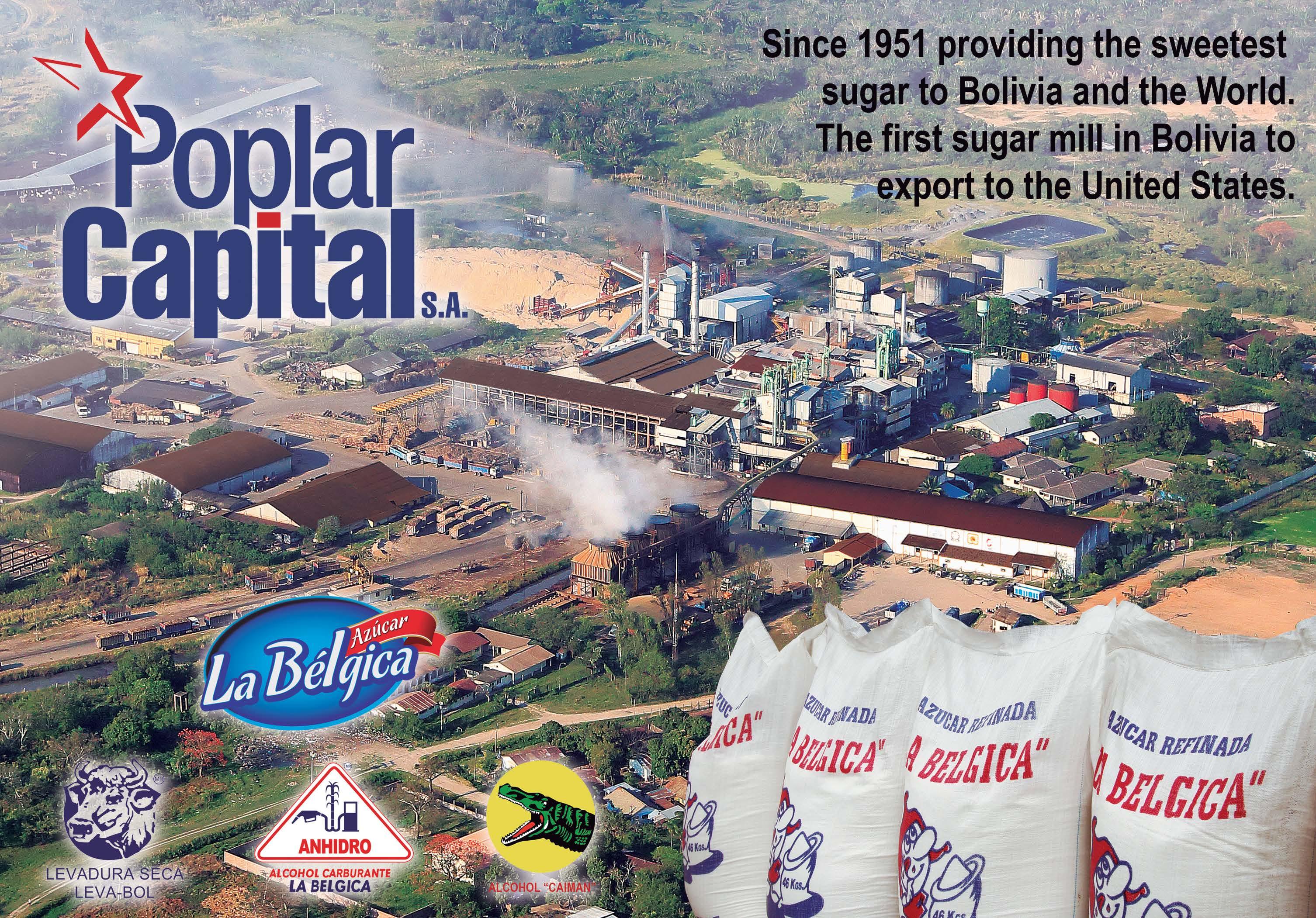 sugar industry, the U.S plays a key role in their exports, as it was one of the first companies to export into this market through its brand “La Belgica”, the original brand for sugar in Bolivia, over 35 years ago. For Rodrigo Gutierrez, Executive President of Poplar Capital, “the US is the entry door to the rest of the world, and we try to maintain that share Bolivia has with the U.S. because it is beneficial in terms of customs and tax”, he told IGM Investments. Poplar Capital is not only the owner of the factory that produces “La Belgica” sugar, but owns two of the six sugar companies in the country and also produces alcohol through “Caiman”, a very well recognized product in Bolivia with over 60 years in the market. Another of Poplar Capital´s lines of business is animal food, with their brands “Leva-bol”,