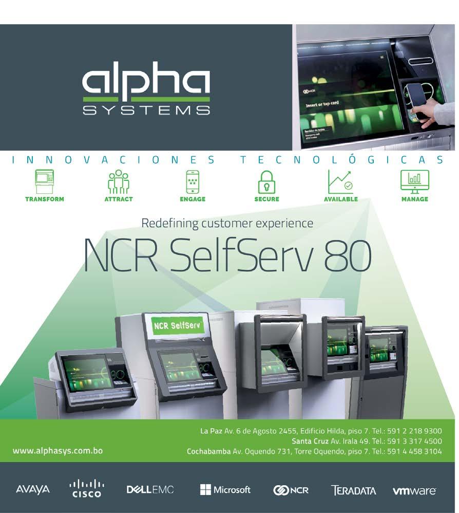 related to NCR”, he said. An example is the introduction of value added transactions, like cardless transactions, remittances and wire transfers through cash machines, transfers, payment of services and others, he added. Another important milestone was expanding the automation of cash deposits through cash machines, something that neighboring countries don´t have yet to the extent Bolivia does. As Unzueta explained, Alpha Systems has positioned itself well because of the brands they offer and because of their clients. “We characterize ourselves for the effort we undertake in trying to be excellent”, he said. Alpha Systems works closely with the US because they represent leading American brands, and although their main activity is still banking, their second vertical is telecommunications. Unzueta mentioned Alpha Systems wants to offer more solutions, become a small cloud, although not in the traditional sense of delivering virtual machines, but delivering added value services and solutions, he concluded.