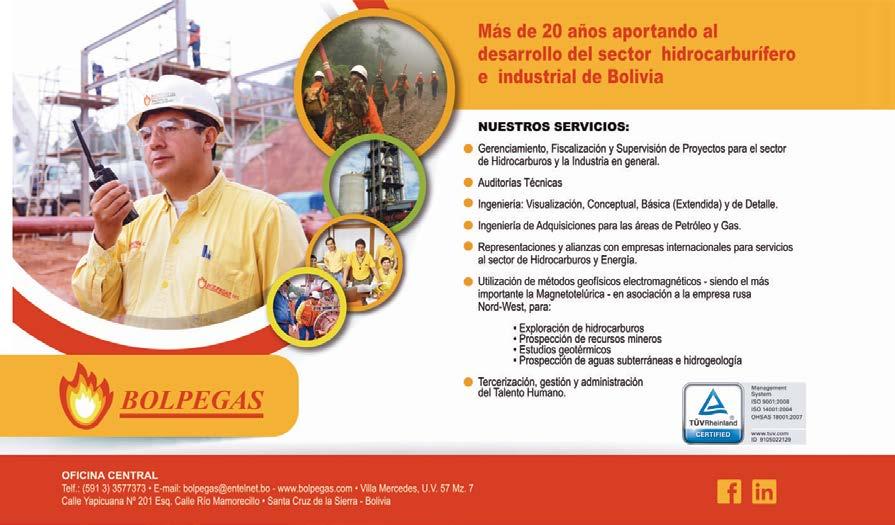 participated for over two decades in important projects such as the BoliviaBrazil, or the Yacuiba-Rio Grande pipelines, highlighted the impact of the fall of international prices in Bolivia and other countries where the economy is heavily based on the exports of these commodities. Bolpegas is involved in the management and audit of projects, and also participates in engineering, such as in Gran Chaco, a processing plant among the largest in Latin America which processes up to 32.2 millions of cubic meters of natural gas a day, as well as ethane, LPG and gasoline. Bolpegas, has already executed some works in Paraguay and is also contemplating opening a branch in Brazil soon. Carrillo called for the