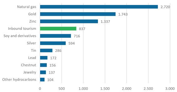 of the comparative advantages and cultural and natural elements of the country, respecting the environment. environment and knowledge of our nations. see graphic , In 2019 international tourism was the country’s fourth most important export product, after natural gas, gold and zinc, and above soybean and its derivatives .... Inbound tourism revenues compared to top ten export products, 2019 (US$ millions)